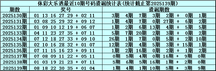 140期安队大乐透揣摸奖号:号码遗漏统计分析
