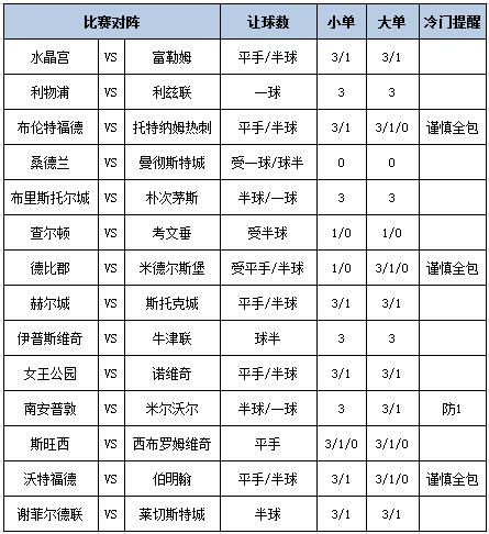 输赢彩第26001期主如果由4场英超+10场英冠的比赛构成,本期竞猜难度仍是较大的,衰落较多的比赛场次惟有2场,然而衰落不及的比赛场次仍是较多的,且还有部分半球或半一衰落的比赛场次,机构给出的信心仍是不及,同期,本期有较多的军队都是在相比密集的赛程中作战,举座来看,部分军队的体能仍是需要多属意的,本期的竞猜难度较大,需要多留神。底下,带来本期的大势分析:
