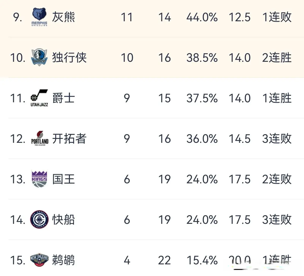 2.西部排行榜第9-15名:当今灰熊战绩11胜14负,过时榜首雷霆13.5个胜场差,位列西部第9名。2连胜的独行侠,占据附加赛区临了一个限额,近期浓眉戴维斯和新科状元弗拉格的双状元组合越来越剖析。爵士天然跌出附加赛区,但却与第10名独行侠胜场差相易,3连败的开荒者再过时0.5个胜场差,屈居第12名。国王、快船、鹈鹕分列西部倒数三名,沦为难兄难弟,尤其快船更是令东谈主失望,毕竟这然而赛前被视为争冠球队啊。