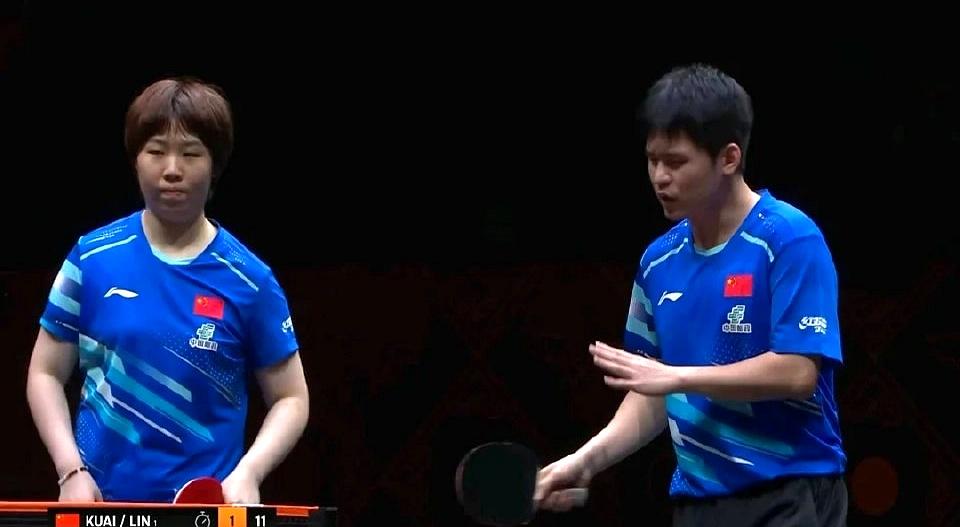 蒯曼和林诗栋被裹带着往后退,反手区域被连续点名,连系的节拍被拆散。