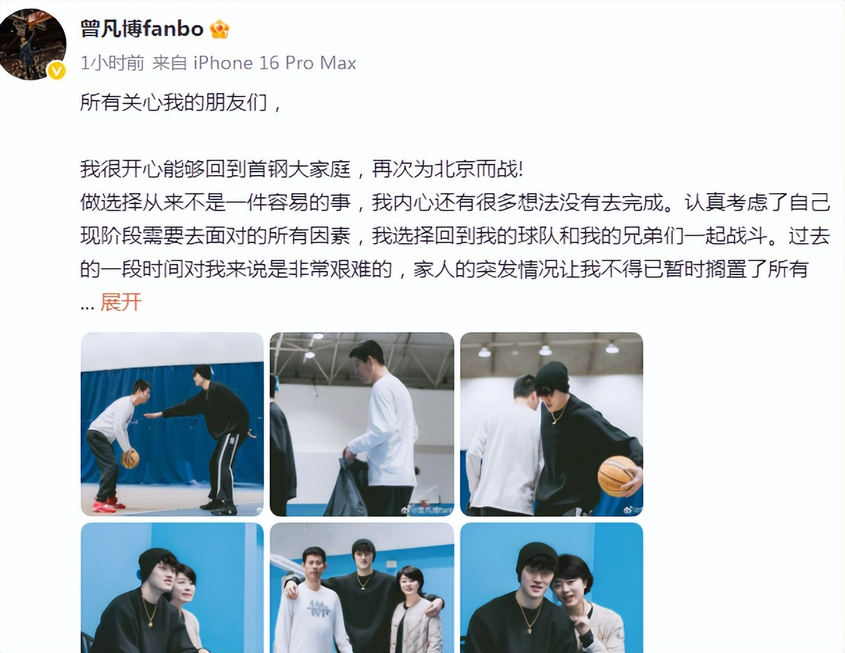 如今曾凡博发声讲述重返北京男篮,他示意:“所关联心我的一又友们,我很爽直或者回到首钢巨匠庭,再次为北京而战!”