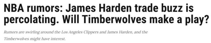 那么,咱们从球迷视角来掂量,你认为哈登和丛林狼之间有莫得契机呢?咱们翘首跂踵了。